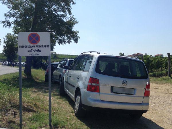 Manjše makadamsko parkirišče ministrstva za notranje zadeve je od letos plačljivo, zato se mu želijo vozniki izogniti - tudi tako, da avtomobile parkirajo na cesti ali kar med vinogradi. Jadran Sever iz Vinakopra je težave opisal takole: "Avtomobili so pravzaprav parkirani vsepovsod: na glavni cesti, na obračališčih, v vrstah - celo na dostopnih poteh, kjer so table 'prepovedano parkiranje'. Mi moramo to fizično preprečevati. Zjutraj pošljemo delavca tja, da onemogoči parkiranje, tako da lahko vsaj tisti vinograd obdelujemo."