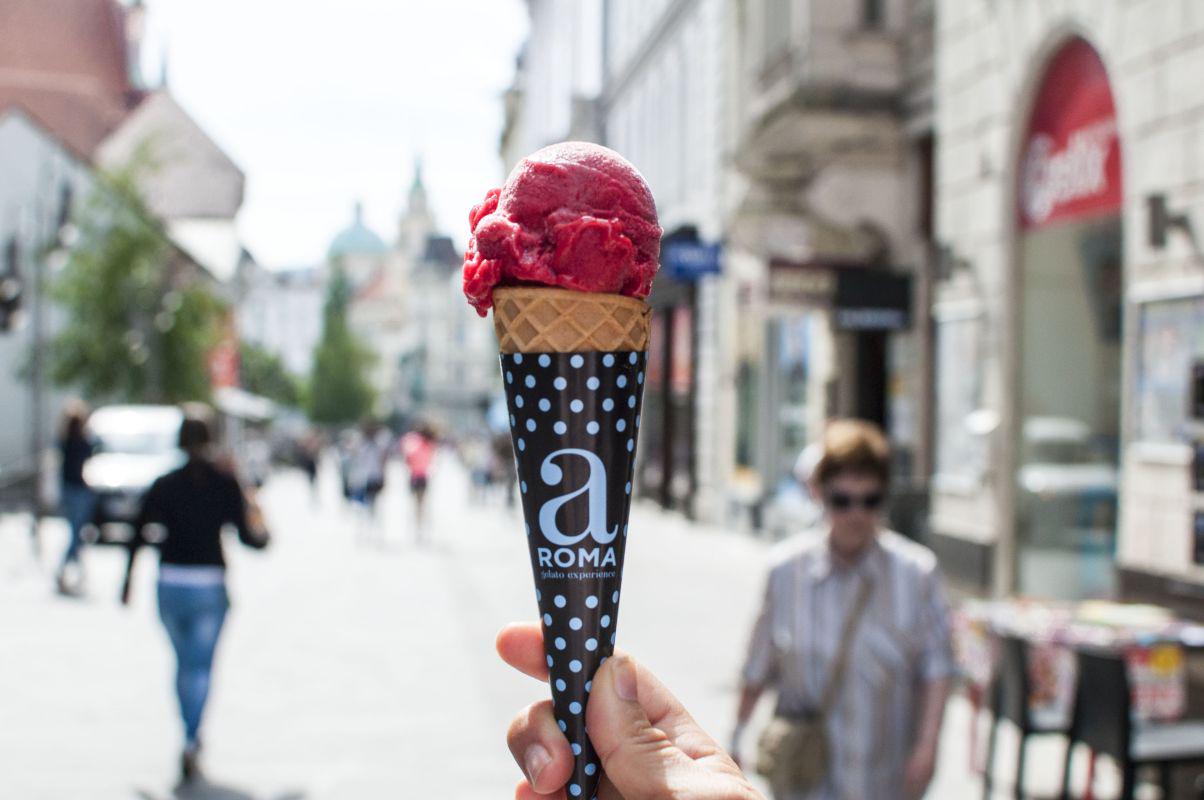Le nekaj metrov više od majhne butične gelaterie, mimo Filharmonije, Primičeve Julije na Wolfovi ulici in frančiškanske cerkve je slovenska sladoledna franšiza aROMA. Vodilo petih franšiz v Sloveniji ter poslovalnice na Hrvaškem in v Dubaju, kmalu bodo franšizo odprli tudi v Avstriji, je sladoledna izkušnja ali 'gelato experience', kot jo poznajo v Italiji. "Tam so najboljši mojstri pravega domačega gelata razvili nekaj, kar je v trendu, kar je 100-odstotno naravno in kjer so uporabljene izključno najboljše sestavine z vsega sveta."