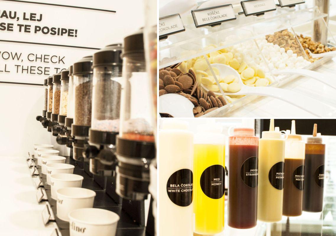 "Idejo točenega sladoleda, pri čemer si različne dodatke postrežeš sam, smo dobili med potepanjem in preživljanjem počitnic v Italiji, kjer smo videli to sladoledno novost," pojasni vodja sladolednega bara Nastja Božič. Čeprav njihov asortima točenih sladoledov zaokroža 14 okusov, poleg čokolade in vanilje tudi grški jogurt, mango, angleška krema in tiramisu, jih vsak dan ponudijo le osem. Sladoled se natoči v enega od treh različno velikih lončkov ali v kornet, nato pa po želji doda različne pisanomrvične posipe, prelive, sveže sadje, hrustljave vaflje ali holipe.